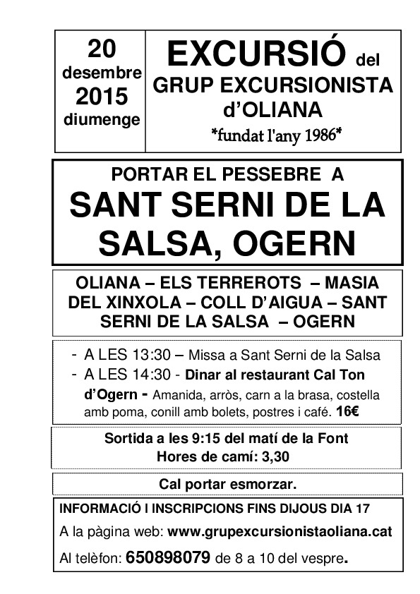 Sortida el 20 de desembre a les 9:15h des d'
