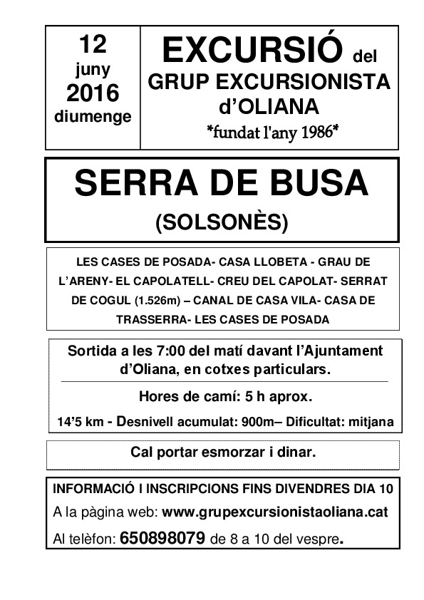 Sortida el 12 de juny de 2016 a les 7:00h des d'
