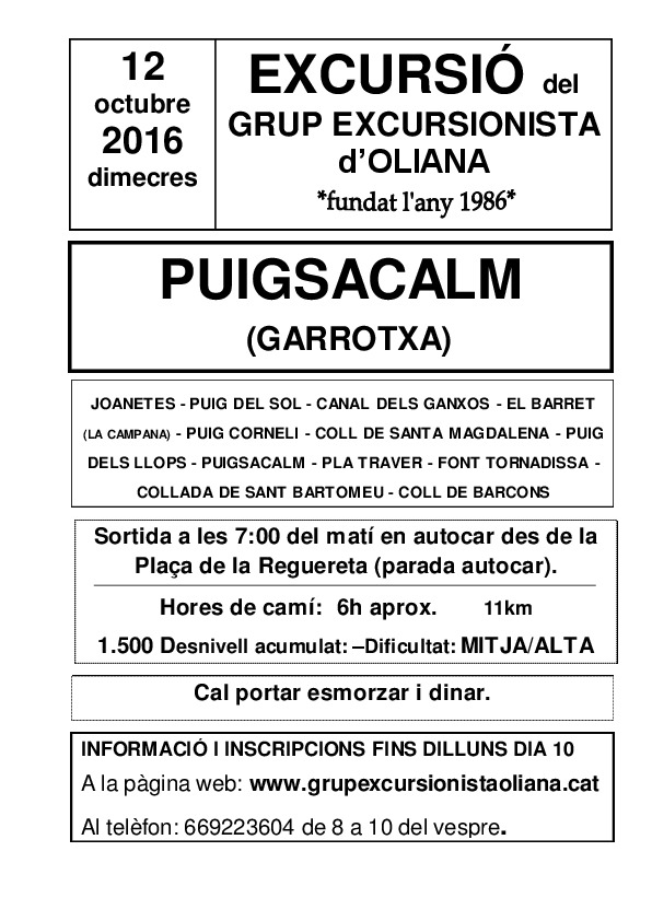 Sortida el 12 d'octubre de 2016 a les 7:00h des d'