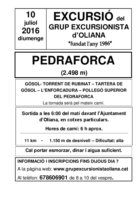 Sortida el 10 de juliol de 2016 a les 6:00h des d'